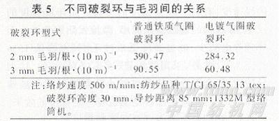 2.2.1 电镀气圈破裂环对络纱毛羽的影响(见表5)