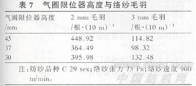 2.2.4 意大利萨维奥络筒机气圈限位器对毛羽的影响(见表7)