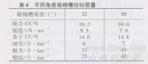 纺杯凝棉槽角度小时,棉条中比较大一点的杂质可能会嵌在里面形成纱疵,所以,对于性质不同的原棉,在选择纺杯凝棉槽的角度时应予以综合考虑。