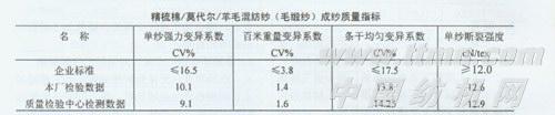 该产品经本厂检验和上海市纺织品质量检验监督中心检测其成纱质量,检测数据如下表。