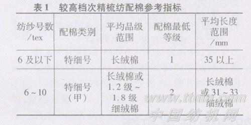 今仅以纺5.8 tex~10 tex范围内精梳纺为例,列表1如下。