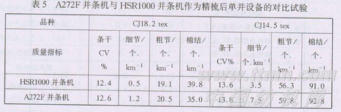 2.5不同并条机当精梳后单并设备的对比试验(见表5)