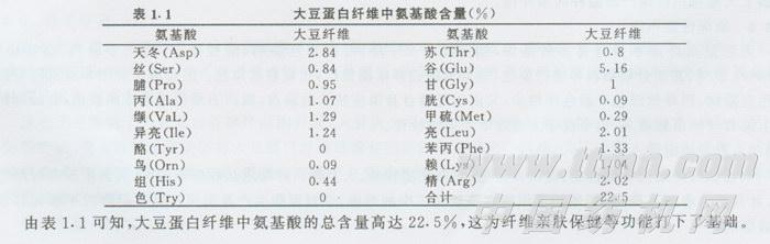 大豆蛋白纤维属天然再生蛋白质纤维,纤维中含有多种人体所必需的氨基酸,其所含的各类氨基酸的量如表1.1所示.
