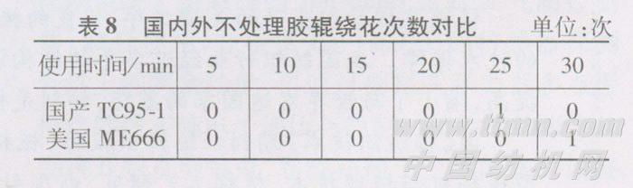 从目前我国研制的不处理胶辊与国外同类产品对比试验来看,已非常接近,见表8所列。