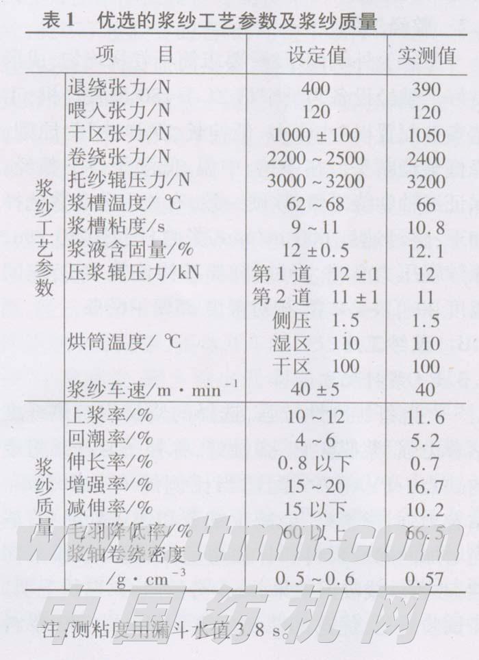 由表l看出,浆纱各项质量指标稳定,均达到预计效果,为织造打下良好基础。