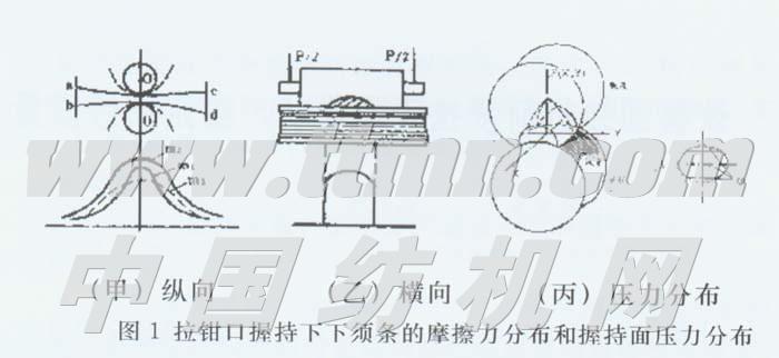 (1)牵伸区前钳口握持力(罗拉钳口对须条的摩擦力)的大小必须足以克服牵伸过程中须条所受到的牵伸力。