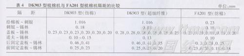因而,我们可以认为DK903型梳棉机的锡林膨胀在隔距小时更为严重。在高产时由于受热和离心力等因素影响,其实际隔距可能是要小于FA201型梳棉机。当纺超细纤维时,为避免纤维损伤,其隔距比棉要大些。