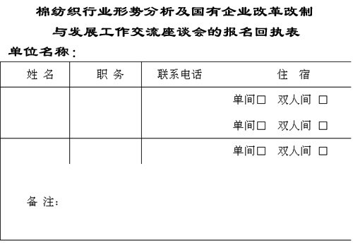 今年我国棉花价格起伏较大,给棉纺织及相关行业带来了很大影响。为此,中国棉纺织行业协会、中国纺织企业家联合会拟于12月中旬在宁波市召开“棉纺织行业形势分析及国有企业改革改制与发展工作交流座谈会”,探讨随着棉花增产和纺织品配额的取消以及国际贸易摩擦的日趋加剧,我国纺织行业发展的趋势,交流当前我国国有纺织企业在深化改革与发展的进程中,如何把握有关政策及有利时机稳步并卓有成效的发展,沟通情况、介绍经验、交流看法,从而有助于企业正确判断形势,开阔思路。现将会议的有关内容通知如下: