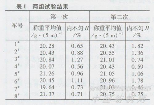 从内不匀看,第一组试验数据中内不匀大大优于第二组,但是计算两组总不匀时发现,第一组的总不匀H2.45%,大于第二组的总不匀H1.51%。由此提出了问题:为什么内不匀较好的第一组数据总不匀比内不匀较差的第二组还差?
