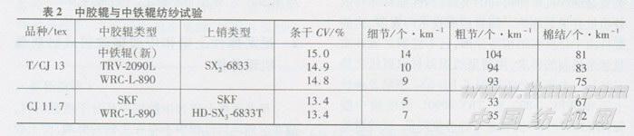 从表2试验可以看出,TRV-2090L型、WRC-L-890型中胶辊纺纱质量优于中铁辊,国产中胶辊与国产尼龙弹性上销配套,纺纱质量水平与进口SKF碳纤上销和中胶辊相当。