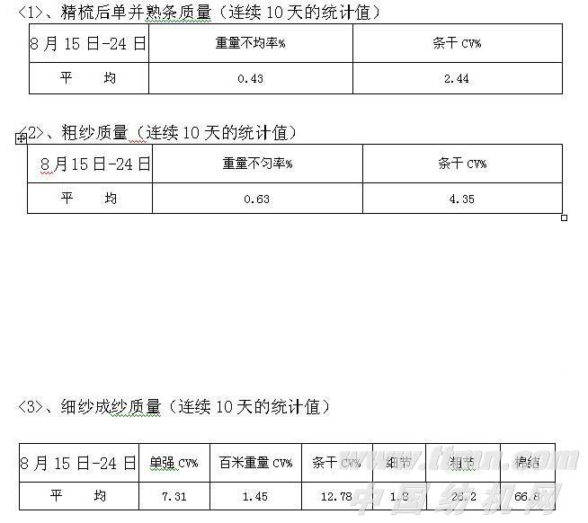 通过以上生产实践验证,成纱质量达到乌斯特统计值2001公报25%水平
