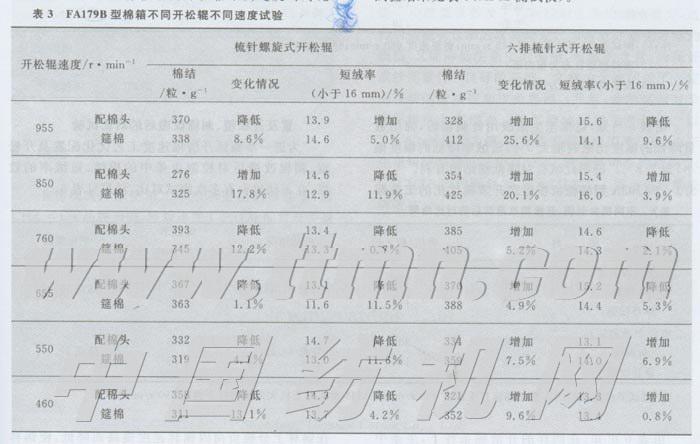 4.1.1 FA105A型单轴流开棉机打手速度的优化试验