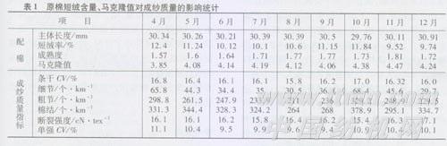 1 短绒率、马克隆值对成纱质量的影响