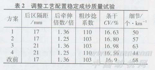 2调整工艺配置可稳定成纱质量