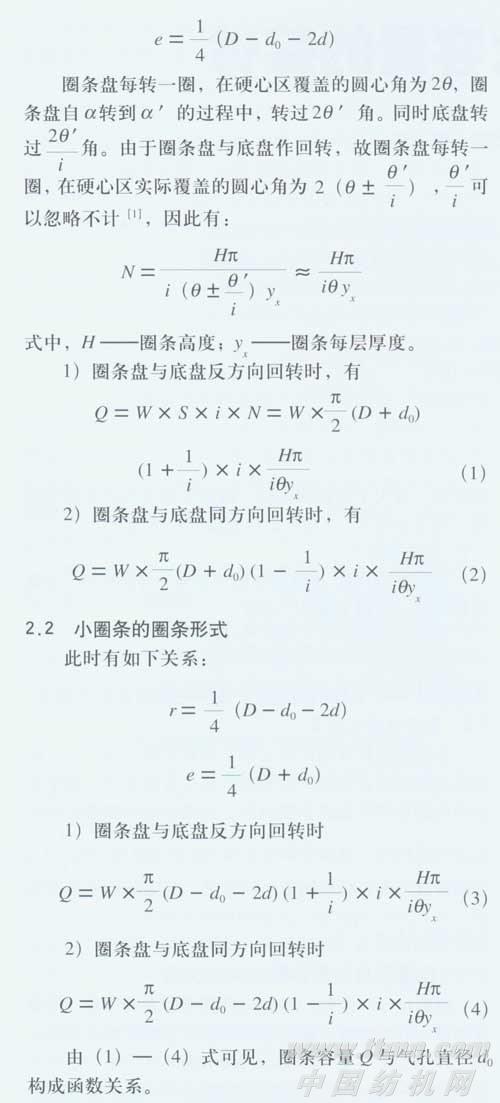 从表1中可见,大、小圈条在同、反方向的情况下,其最大容量和对应的气孔直径是不同的,表1中计算的只是设计值,在实际生产应用中,可根据具体参数计算。大圈条时,相同条简直径反方向时的最大容量比同方向要大,而此时其气孔直径反而大。这就说明了气孔直径小,未必就容量大。小圈条时,反方向与同方向其最大容量相差不大。