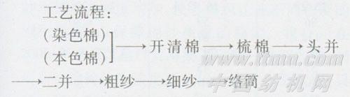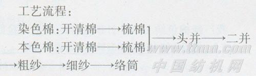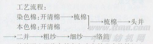 在纺棉色纺纱时,采用不同的工艺流程.将会得到不同的效果。我厂在批量生产时,根据品种的不同要求,合理调整工艺路线及工艺参数,以达到产品设计要求。