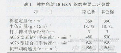 纯棉色纺18 tex针织纱主要工艺参数如表1所示。