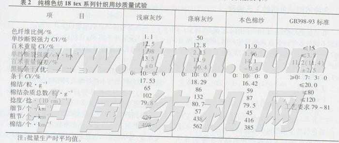 我厂纯棉色纺18 tex针织用纱的质量试验如表2所示。