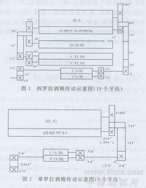 1.1 四罗拉剥棉、单罗拉剥棉的传动比较