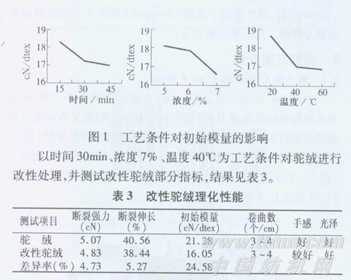 5.1通过化学处理,可不同程度地降低驼绒的初始模量,提高驼绒的抱合力和可纺性。