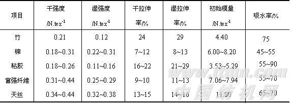 1.3 竹纤维与其他纤维素纤维物理机械性能比较(见表1)
