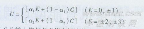 这里用于模糊推理的控制规则,采用了双自调因子的控制规则,其规则解析式可概括为:E、c为输入值与名义值之间的误差和误差的变化量,其语言变量论域可取为{E}={c}={一3,一2,一1,0,1,2,3},α1、α2为两个设定的值,可分别取为0.4、0.6。该关系式基本上符合人们自调匀整的控制经验,但其规则仍需按照生产过程的实际进行适当的完善,这里采用了优化量化因子的方法进行规则的修正。