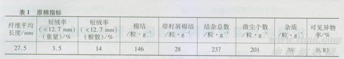试验原料采用辽宁黑山棉,AFIS仪检测的原棉指标见表1。