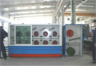 并列式连续拉丝机是一种用于拉拔金属线材的直进式连续拉丝机,将组成一台或两台连续拉丝机的所有单拉丝机按2~4列并排分布并以水平形式同时安置在一个带有垂直平面的机架上,将所有的模盒装置也设在机架上并使之与水平面成一定夹角,产品具有占地少、有利于提高劳动生产率及实现卫生和文明化生产。