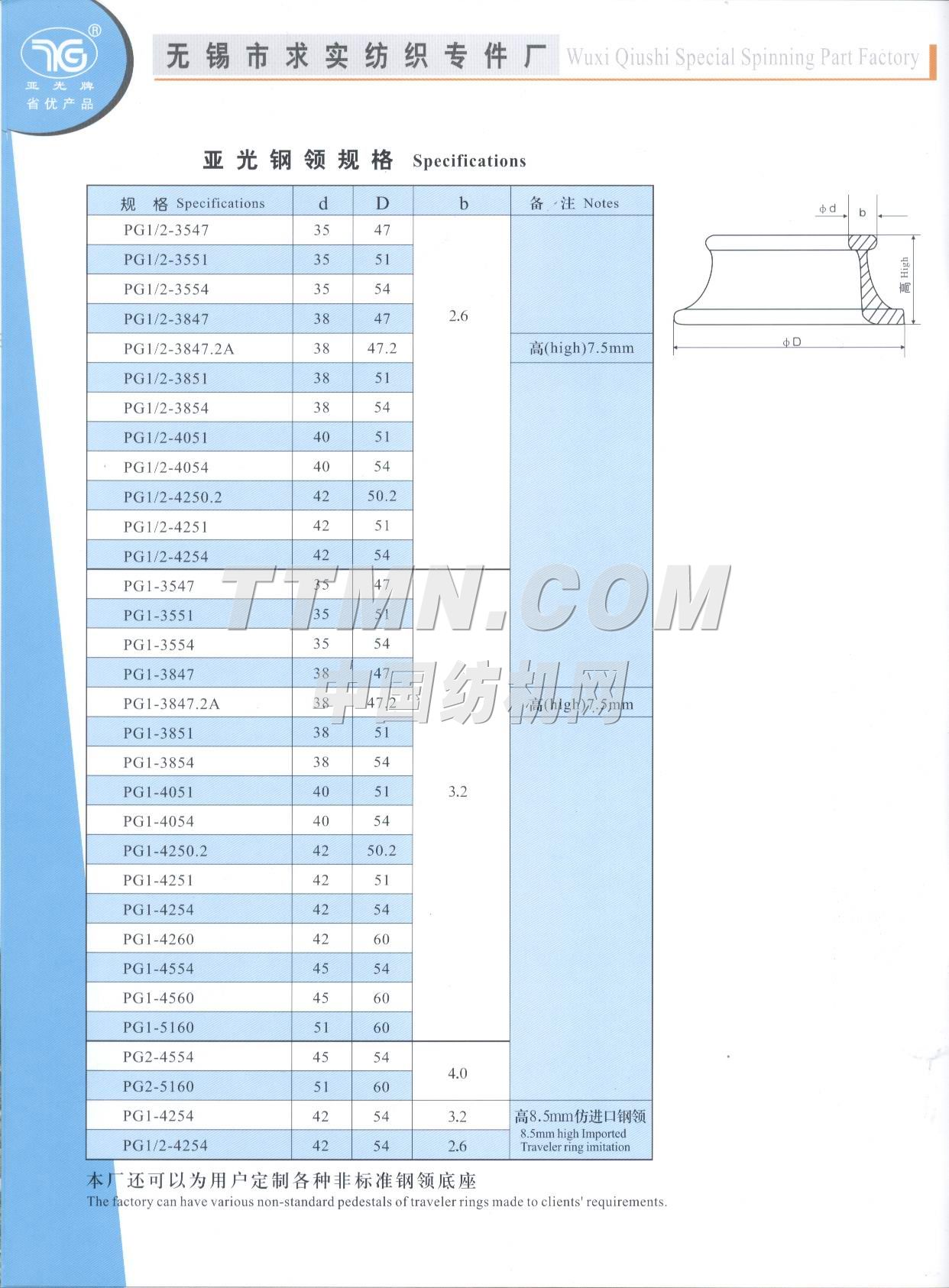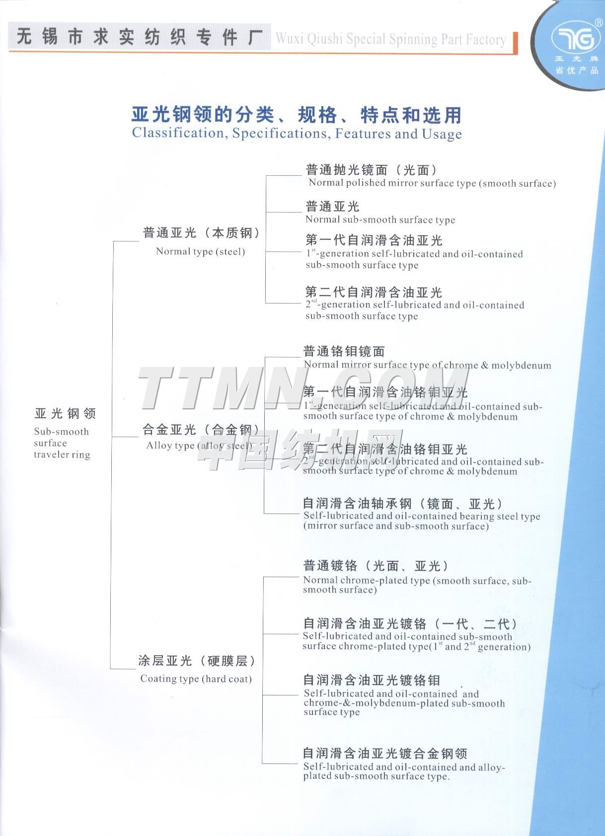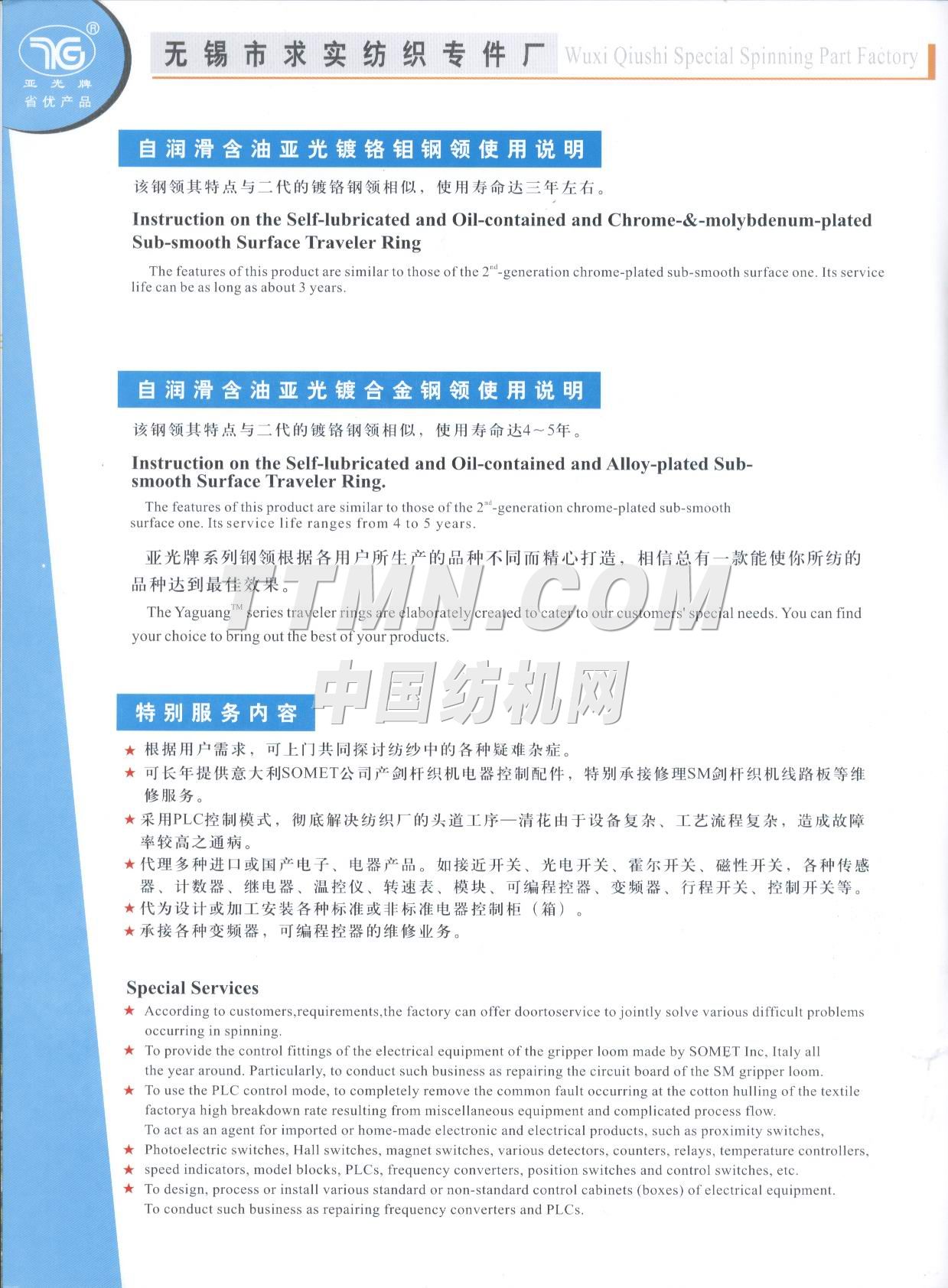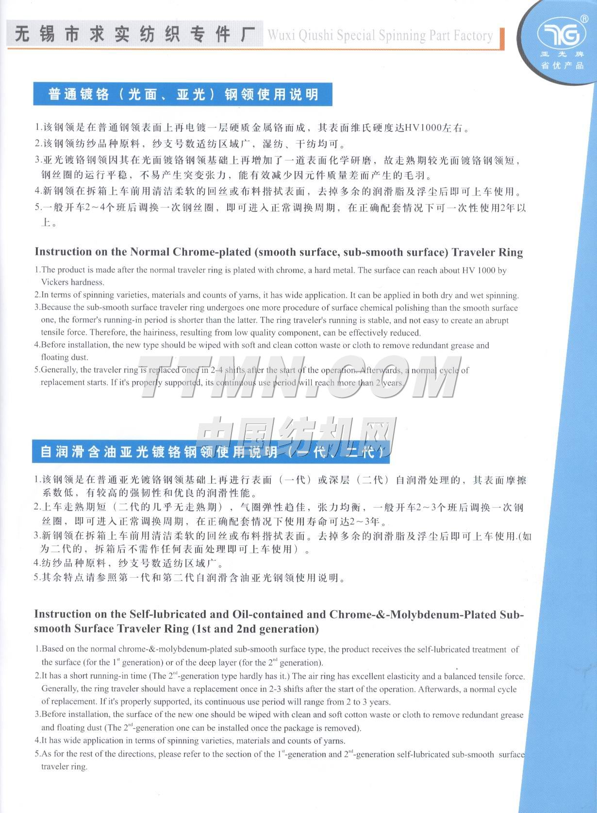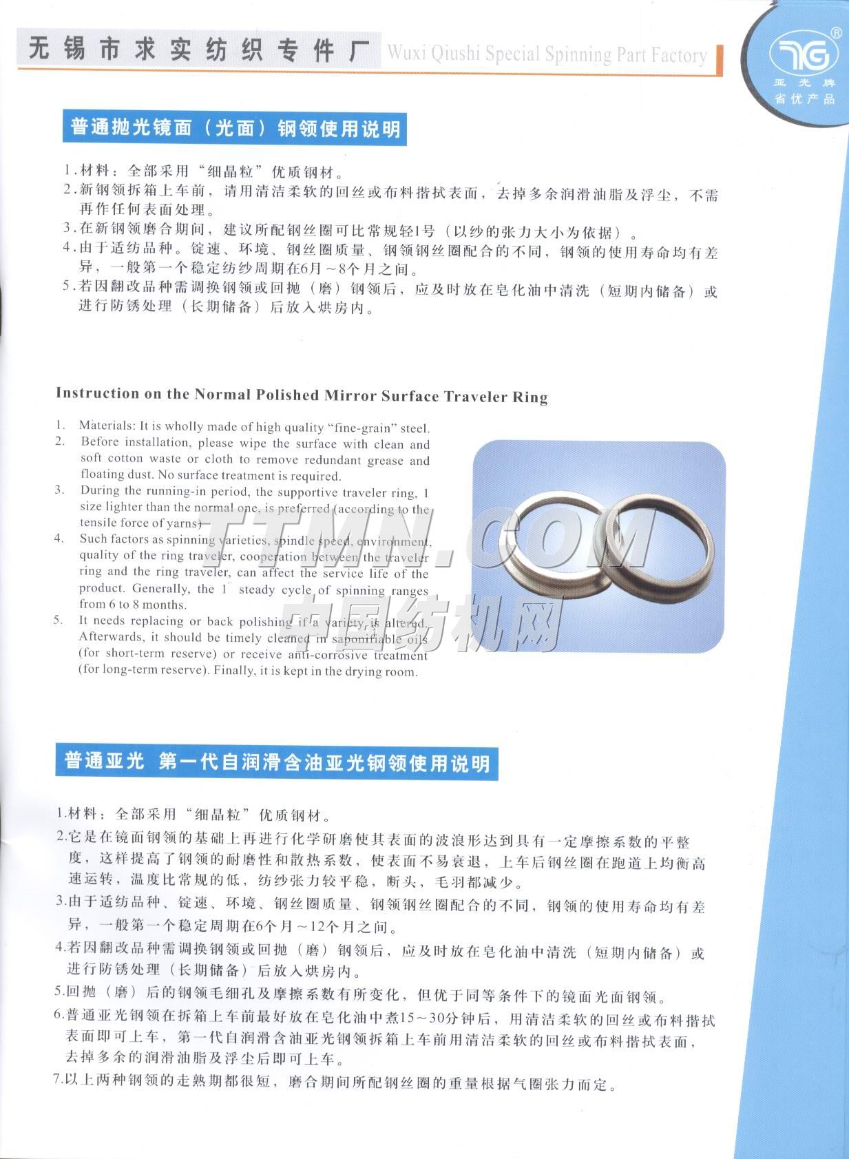江苏省无锡市求实纺织专件厂是一家棉纺钢领的专业性工厂,也是全国纺织器材行业协会成员之一。 该厂组建于1996年,位于江南名城太湖之滨的(2001年3月被国务院命名为特大城市)无锡市市区,座落在惠泉山南麓和古运河河畔,距市中心5分钟车程。距火车站、长途汽车站8分钟车程,距上海虹桥机场80分钟车程,交通运输十分便捷。 从建厂之日起我厂就致力于对 棉纺钢领的不断潜心研制和新品的开发,现有正式员工58名,其中中级职称人员3名,初级职称人员6名,技师5名,聘请高等院校和科研单位教授2名,产品品种已有初期的发展到到目前的系列化、多样化、批量化。产品的结构和科技含量更是日新月异目前已有自润滑含油亚光(I)型、(II)型、(III)型、钢领可供客户选择,其中(III)型钢领有望填补国内空白而最终替代进口产品。2000年7月我厂产品被江苏省科协、经委、计委评为扩广技术----亚光钢领项目三等奖,时隔一年又被江苏省产品质量监督调查办公室确认为“江苏市场名优产品”,已连续三年被国家纺织检测中心检验为合格产...