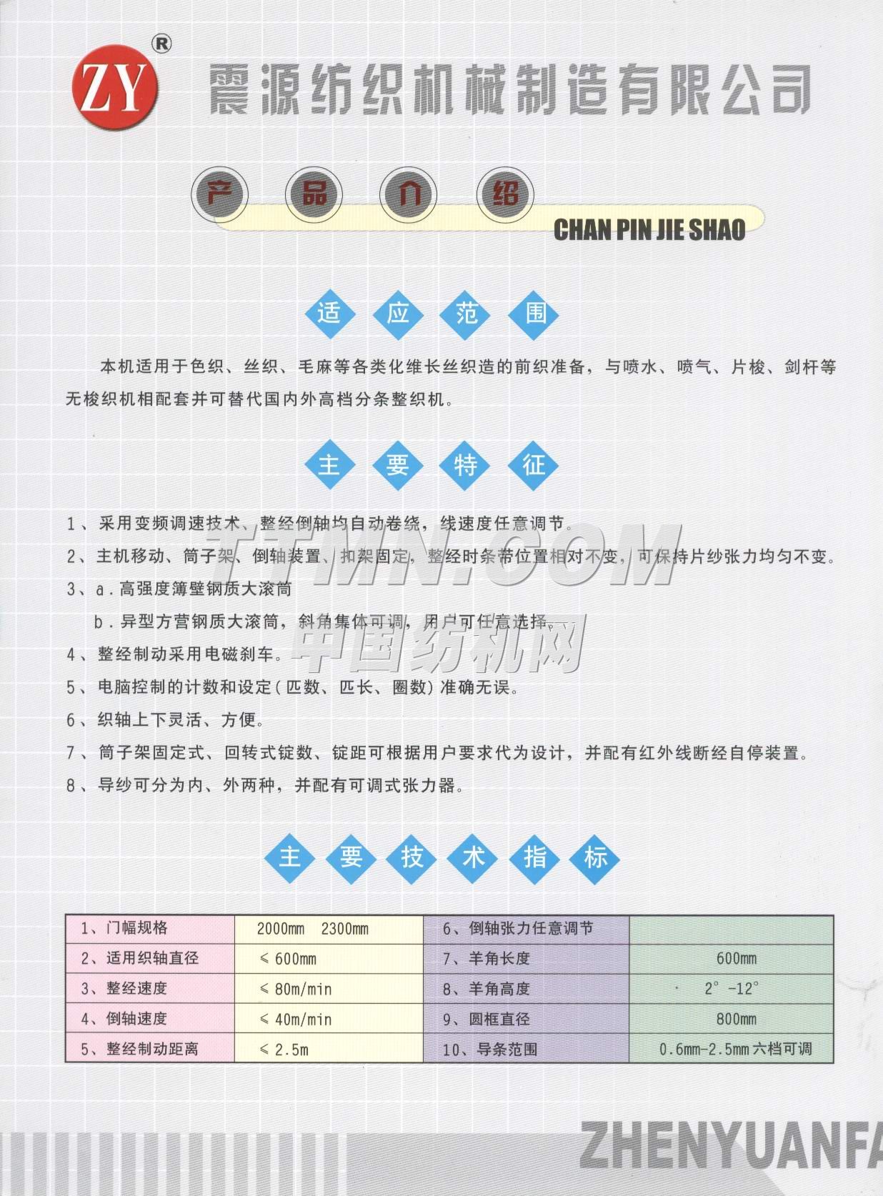 江阴市震源纺织机械制造有限公司是国内专业生产纺织机械的厂家。地处美丽的“江南明珠”、现代化港口城市--江阴。公司地理环境优越,水陆交通便捷。主要生产SGA218B高速分条整经机、SGA218C电子式高速分条整经机、SGA218D智能型分条整经机、SGA200C大卷装分条整经机、1452G分批整经机和ASGD-868A径向卷布验布机、MMB280验布机以及筒子架、张力器系列纺机配件。公司设备先进,技术力量雄厚,产品远销全国各地,并出口至东南亚市场,深受业界人士的青睐。 江阴市震源纺织机械制造有限公司是国内专业生产纺织机械的厂家。主要生产SGA218B高速分条整经机、SGA218C电子式高速分条整经机、SGA218D智能型分条整经机、SGA200C大卷装分条整经机、1452G分批整经机和ASGD-868A径向卷布验布机、MMB280验布机以及筒子架、张力器系列纺机配件。公司设备先进,技术力量雄厚,产品远销全国各地,并出口至东南亚市场,深受业界人士的青睐。 ...