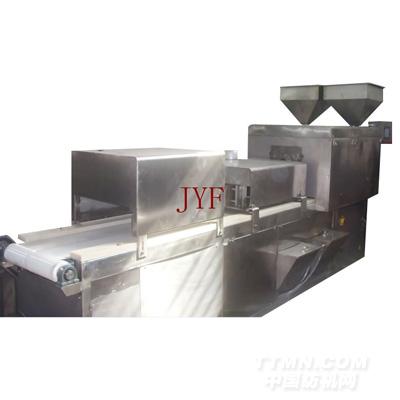 巧克力颗粒成型机采用新概念的巧克力成形工艺,它的设计容许巧克力与各种脆米、膨发米、谷物、果仁果等,或碎饼干,米果,方便面等颗粒状固体填充物结合,进而利用模盘上的模孔,赋予成品各种变化不同的产品和尺寸,符合时尚的口感,还可以同时大幅度降低材料成本。