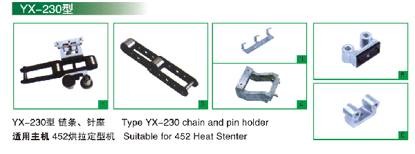 是专业制造各种进口、国产拉幅定型机、丝光机、人革机、涂层机、 蒸化机、氧漂机、平网印花机等印染机械配件的企业。主要产品有布铗、链条、针座、针板刮刀、刮刀支架、闷头、润滑板、道轨、旋转进气头、三(四)指剥边器、空气安全阀、搅拌机、高温油脂、双向塑料、薄膜拉伸布铗等印染机械配套产品,产品包括一百多个品种、上百种规格供客户选购。公司坚持全面的质量管理,严格执行ISO9001:2000质量管理体系认证标准。产品质量稳定可靠,是目前国内规模较大,技术力量较强的布铗、链条、针板的生产基地之一。