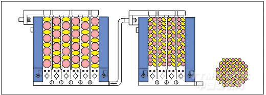 由2台混棉机串取排列,以4格&6格排列为例,使用4格配6格可得24倍效果。机台高度4200mm,工作宽度1200mm。