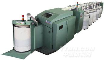条筒喂入。条筒规格Φ0700*1000毫米。毛条经导条罗拉、压辊进入台面板,使毛条整齐排列,不致产生意外牵伸,形成厚薄比较均匀的毛片。按照所需喂给长度,使毛片输送到进给盒内。 梳理机构 梳理机构由进给盒、托毛板、钳板、集束装置、圆梳、顶梳等组成。 进给盒配九排圆针针片,其中5针/10毫米2片,6针/10毫米3片,7针/10毫米4片。 圆梳有针区域占整个圆周的度数为202度。前片安装不同针密的金属锯齿针条6条,后片安装不同针密的金属锯齿针条5条(视不同纤维、品种,可以调整不同针密的针条)。 清洁结构 清洗结构主要由圆毛刷、道夫、斩刀、吸风装置等组成。 拔取机构 分离拔取主要由摆架差动、摇架、拔取罗拉等组成。拔取罗拉加压是调节式杠杆加压装置。拔取罗拉有绕毛自停装置。摇架往复运动由凸轮通过可调连杆来完成。 盛筒机构 盛筒机构由齿轮减速电机、电磁离合器、输出条卷曲箱、圈条器、圈条底盘等组成。 采用变频调节输出条张力,输出条有断条自停和满筒自停装置。 |