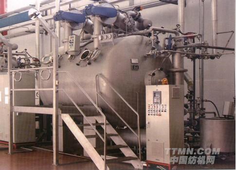 该机也是采用气流雾化原理,以气流牵引织物循环。有高温型和常温型两种形式。考虑到织物 的适用范围,该机的风机没有像国内其他制造商盲目将风机额定功率降低,而是采用交流变频控制。 根据不同的织物克重或品种,采用不同的风速控制。既可保证织物的染色要求,又可达到节省电耗的目的。