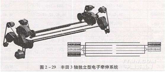 该机首创了3轴独立型电子牵伸系统,丰田公司将喷气织机的开口装置E—shed技术运用到细纱机的牵伸驱动装置,推出了完美的E—draft系统(见图2—29),为最新设计,是本机的一大特点。