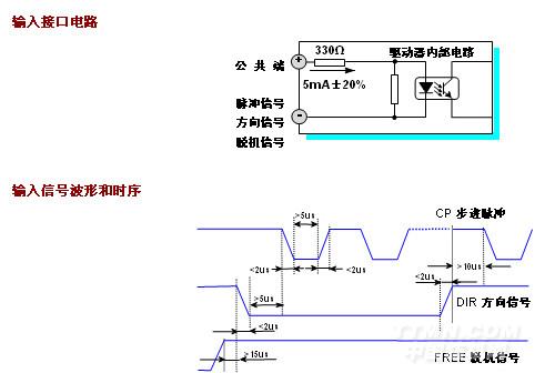 驱动器工作若连续0.1s没有接收到新的脉冲则自动进入半电流状态,相电流降低为标准值的50%,达到降低功耗的目的,在收到新的脉冲时驱动器自动退出半电流状态。