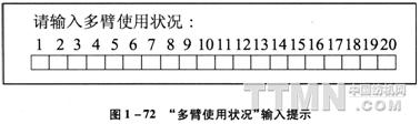 正确输入最大段数后,屏幕提示输入多臂使用状况,如图1—72。