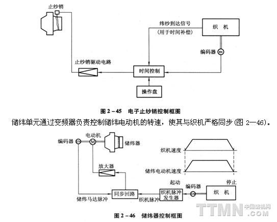 储纬单元通过变频器负责控制储纬电动机的转速,使其与织机严格同步(图2—46)。