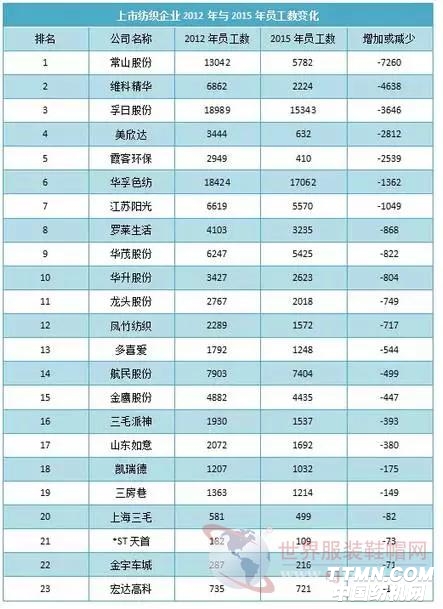 在上市企业利润下跌、甚至亏损的背景下;作为劳动密集型产业典型代表的纺织业,开启了裁员模式。据统计,2015年在A股上市的36家纺织企业中,有21家在裁员,裁员企业占比接近六成;且这样的裁员潮自2013年就已开始。