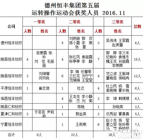 自10月17日起,操作运动会共历时28天圆满结束,比赛项目涵盖生产车间清花、梳棉、精梳等七大工序,共有158名员工报名参加,38名集团及各公司组成的裁判团分组转战德州、宁夏等地为操作运动的顺利举办尽职尽责。