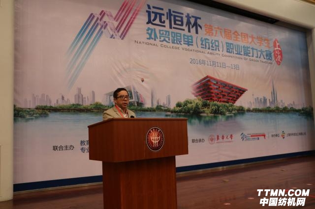 中国纺织服装教育学会会长倪阳生、东华大学党委副书记崔运花及主办、承办、协办单位有关负责人出席开幕式。崔运花首先在开幕式上致辞。她指出,东华大学始终坚持全面贯彻落实党的教育方针,将人才培养作为学校的生命线,以培养高层次应用型创新人才为目标,未来学校将不断深化教育教学改革,为企业、社会输送更多专业知识扎实、实践能力过硬的人才。倪阳生会长在讲话中希望此次大赛能够以赛促学、以赛促教,顺应纺织工业“十三五”规划,为社会和纺织行业培养创新型、应用型的纺织、服装及国际贸易高素质人才。