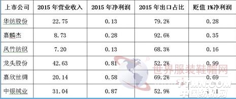 从本土纺织服装板块上市公司来看,对人民币汇率贬值1%带来的短期业绩弹性进行测算。以2015年年报数据为基准,暂不考虑订单价格变动、套保、原材料进口等因素,筛选出人民币贬值1%带来的业绩弹性大于1%的公司并按照弹性从大到小排序如下: