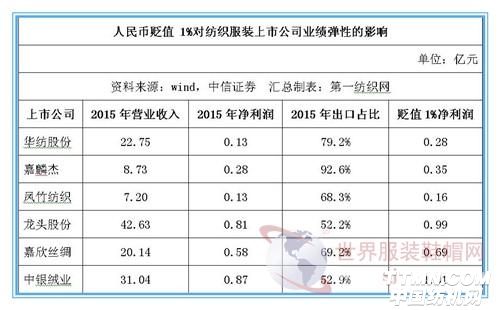 中信证券分析师薛缘分析,人民币贬值对于纺织服装板块公司业绩的主要影响在于:从短期来看,企业出口订单带来的外币收入在编制报表时换算为人民币带来的汇兑收益;从长期来看,订单价格可能下降(具体取决于双方的议价能力和供需情况),产品的价格竞争优势会带来订单量的增加。