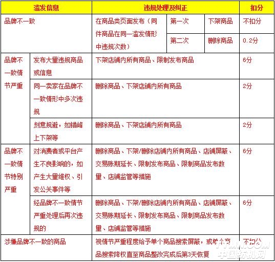 淘宝设“品牌不一致”处罚规定 最高扣12分