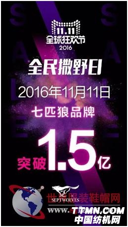 图:七匹狼品牌 2016年双十一销售突破1.5亿