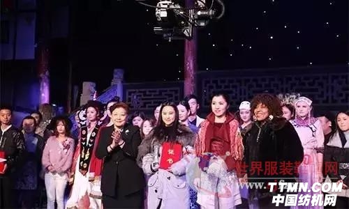 ▲清华大学美术学院染织服装设计系主任、中国美术家协会服装艺术委员会秘书长、中国服装设计师协会学术委员会主任肖文陵,国家民委文宣司文化处处长李民为单项奖颁奖。