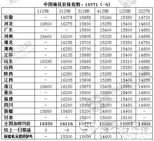 中国棉花价格指数(CC Index)及分省到厂价(1.10)