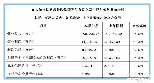 探路者2016年营业收入同期减少24% 业绩将受承压