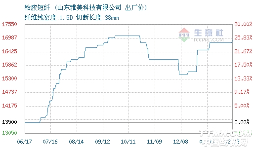 02月03日山东雅美粘胶短纤为16900元